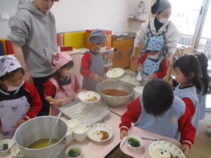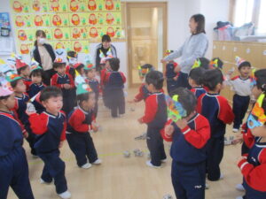 イベント , 保育の様子 節分ごっこ&鬼ドライカレー 2026.02.07 イベント , 保育の様子 今年も節分ごっこを楽しみ⁈、給食の鬼ドライカレーを美味しくいただきました。 Post Share Hatena Pocket RSS feedly Pin it 記事のタイトルとURLをコピーする クレープ作り~5歳児~ 前の記事 関連記事 プール開き 2025.07.04 中央公園へ 2024.12.20 音楽教室 2024.09.13 プール遊び 2024.08.07 山からボス鬼がやってきた! 2025.02.04 七夕飾り 2025.07.04 じゃがいもの種うえ 2025.02.21 ヤクルトマン 2025.03.11